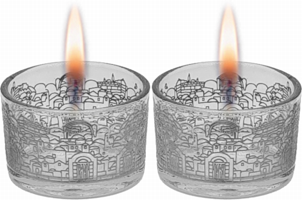 Candle Holders Glass Jerusalem Silver Decoration