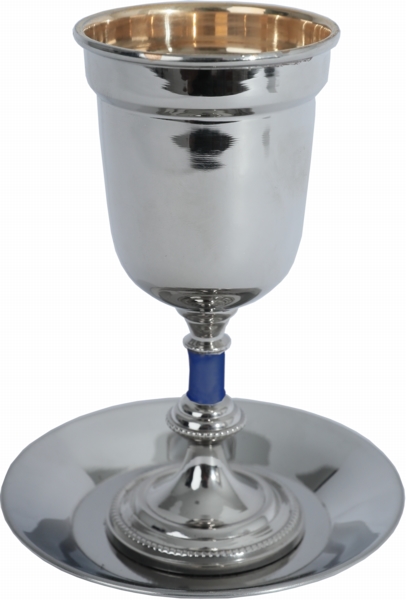 Kiddush Cup Blue with Leaves Pattern